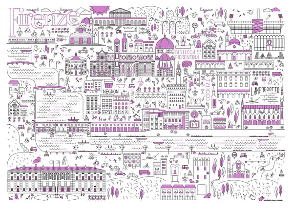 Questa volta ho scelto Firenze. La decisione è stata complicata: l’Italia ha così tanti luoghi meravigliosi da visitare che scegliere è stato arduo! Ho visitato Firenze troppe poche volte, ma la magia che ti lascia dentro dopo aver camminato lungo le sue strade è unica! I luoghi di interesse storico sono un’infinità: non sarei riuscito a rappresentarli tutti, ho cercato di fare del mio meglio! Ci tenevo soprattutto a rappresentare la statua del cinghiale. Spero vi piaccia e… Non vedo l’ora di realizzare un’atra città!