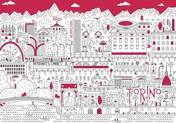 Poster città di Torino, realizzato completamente in vettoriale su Illustrator.